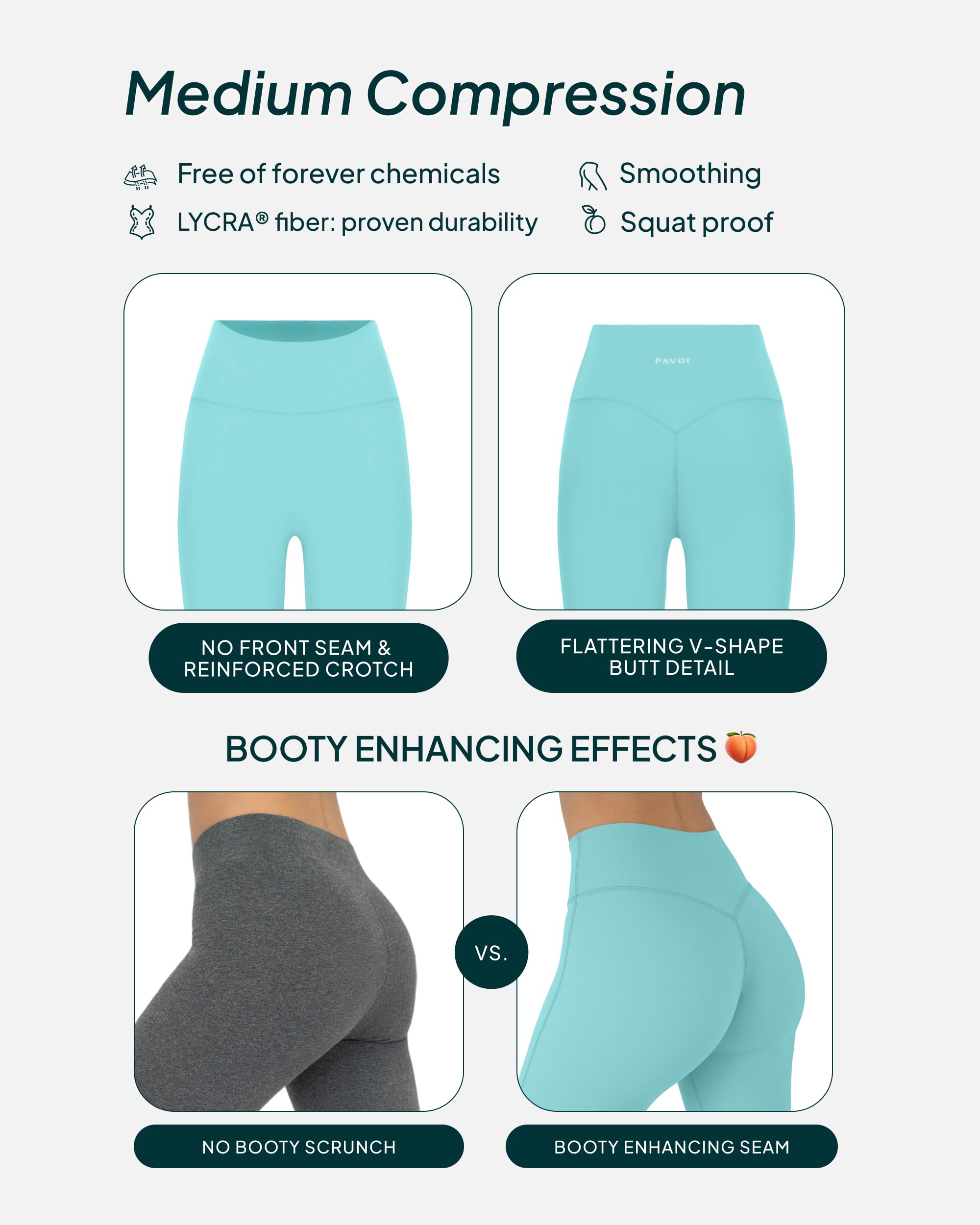 PREMIUM FABRICS: Active by PAVOI styles are made of PFA- and BPA-free silky-soft fabrics that never pill. 70% NYLON 30% LYCRA ®