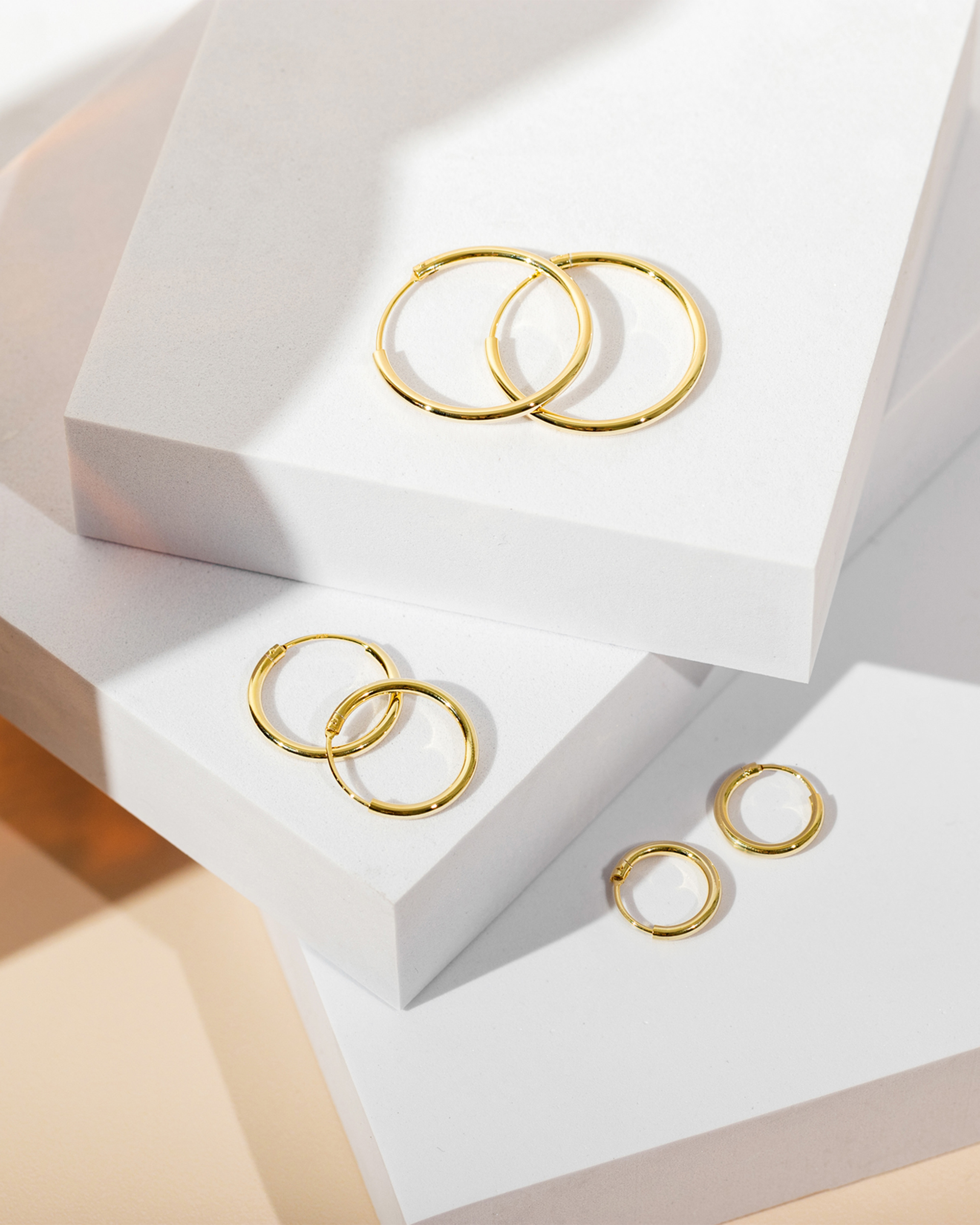 The quintessential hoops. These PAVOI 14K gold-plated classic hoop earrings with sterling silver posts are the perfect round hoops to put on and never take off. Available in sizes for every style, every look, these gold-plated hoop earrings are instant classics.