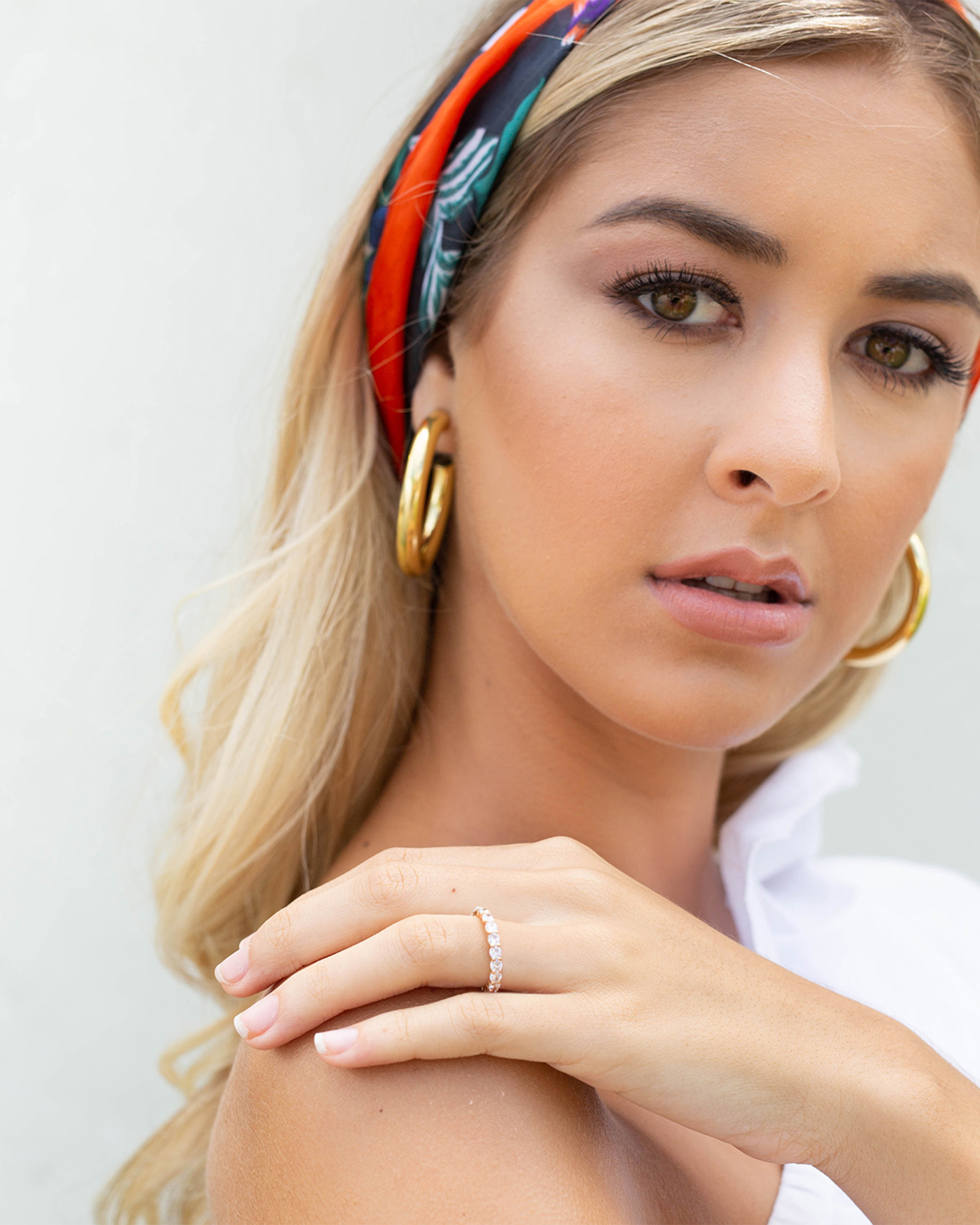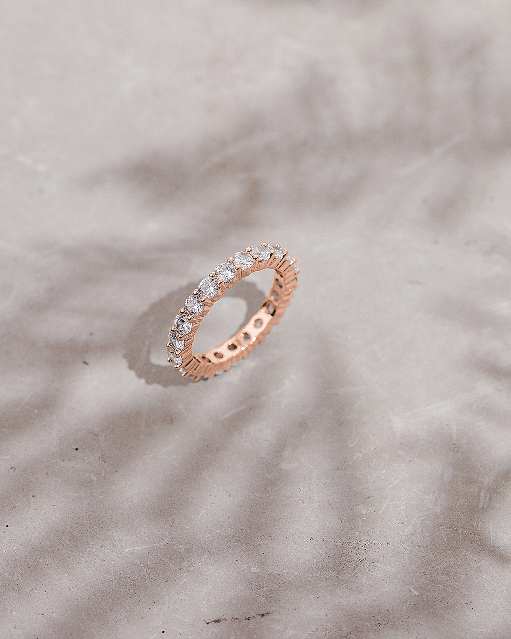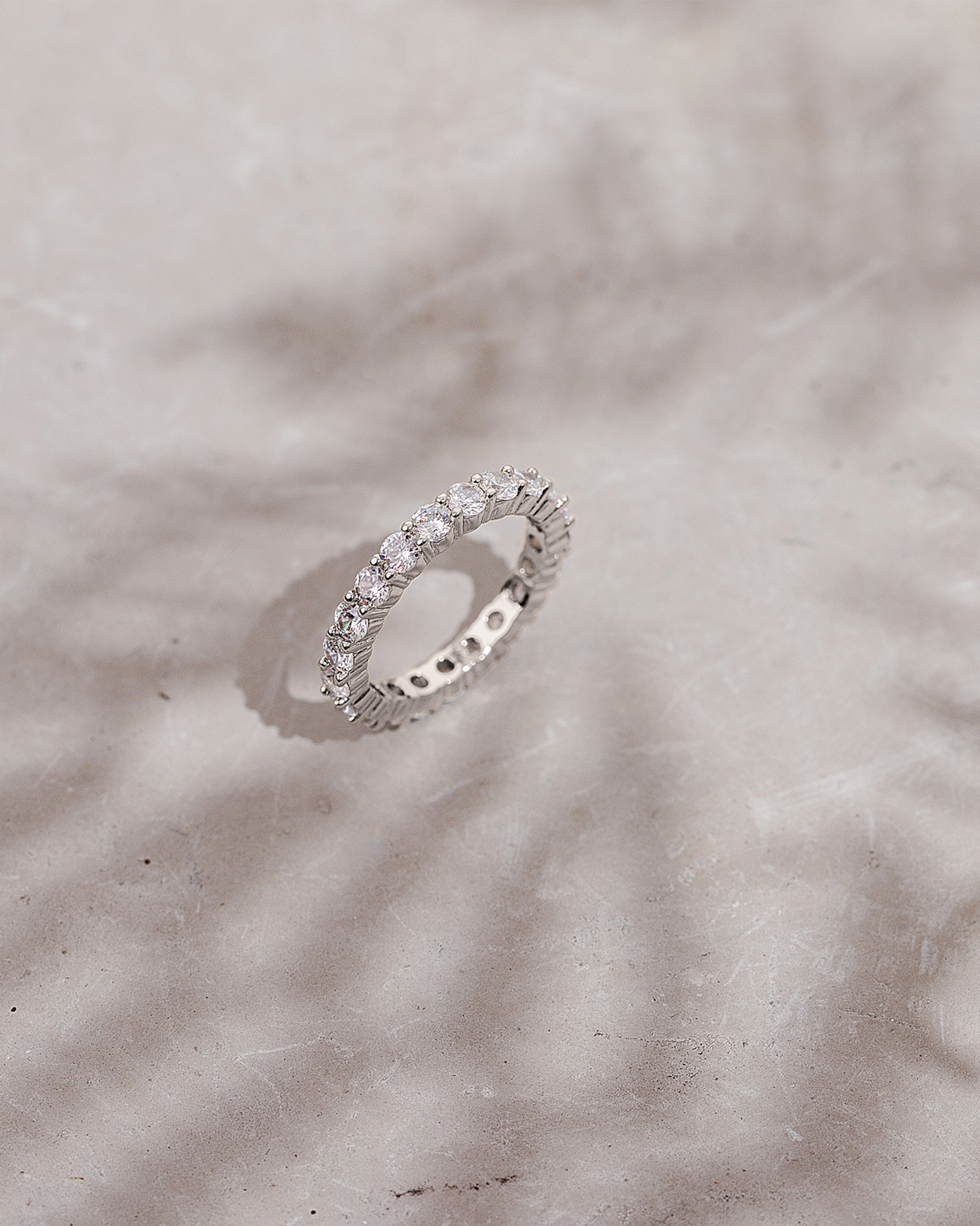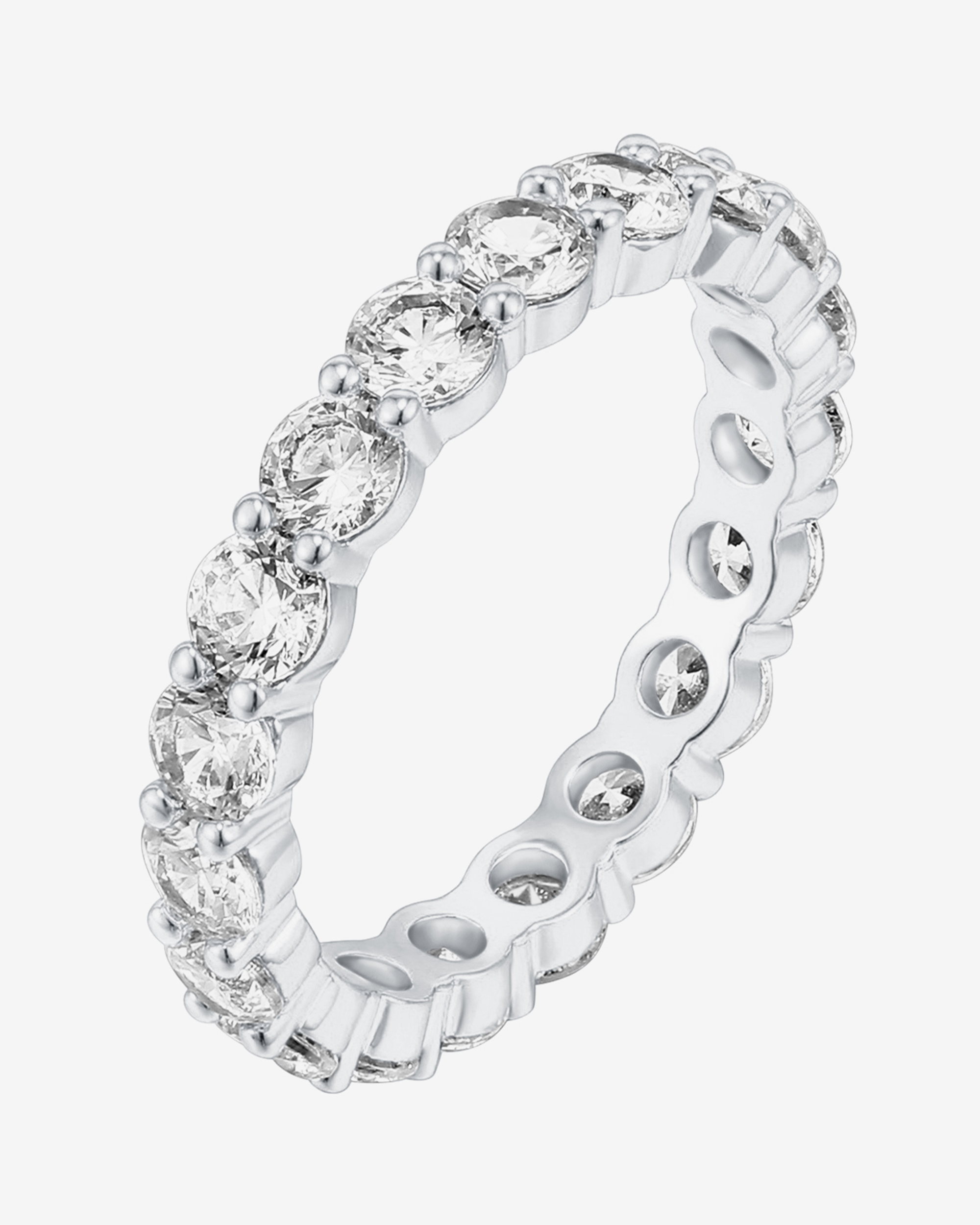 With an unobtrusive shared prong setting, this eternity band is all about the bling. A classic eternity band that can do no wrong. The quintessential “add to cart” kind of ring.