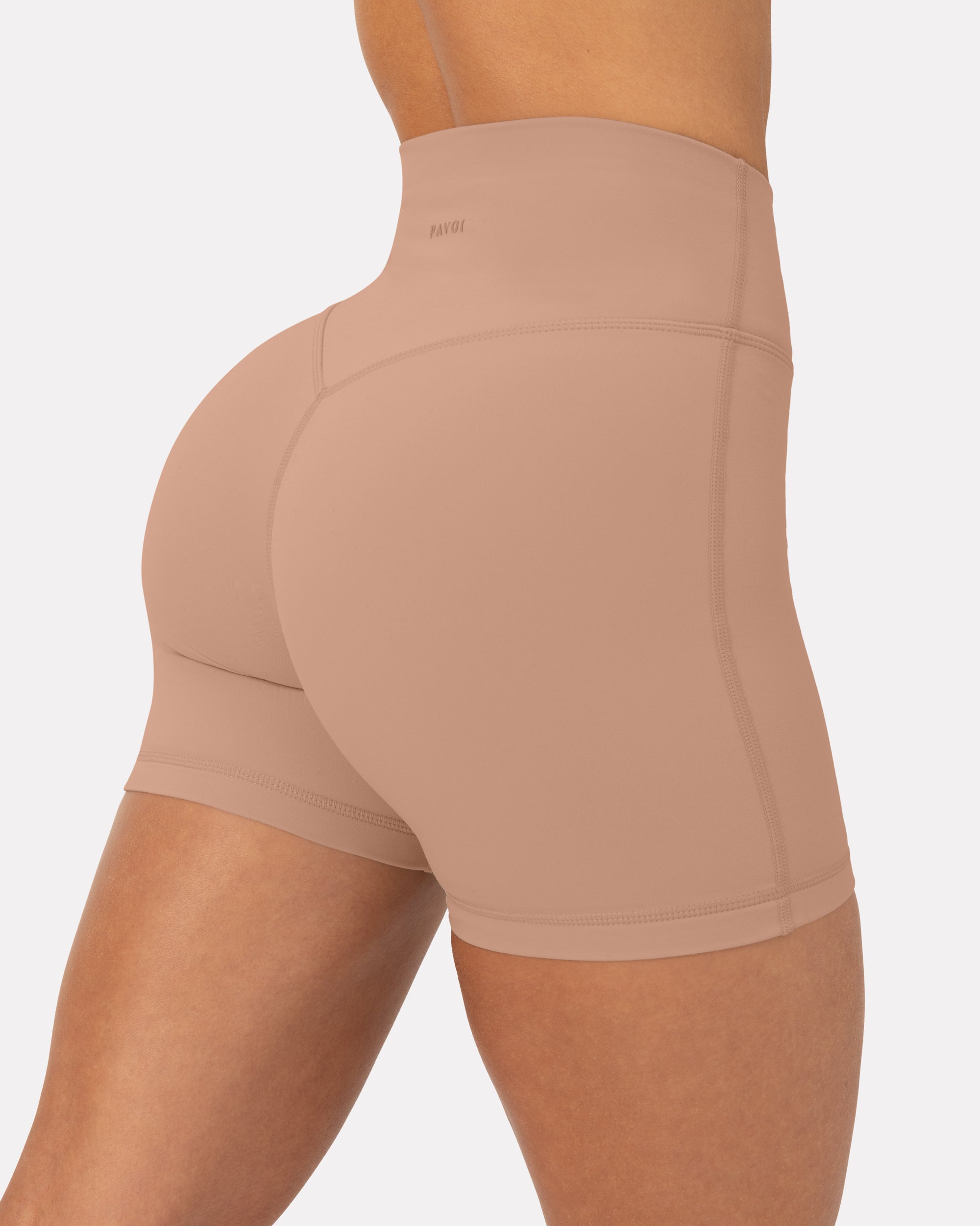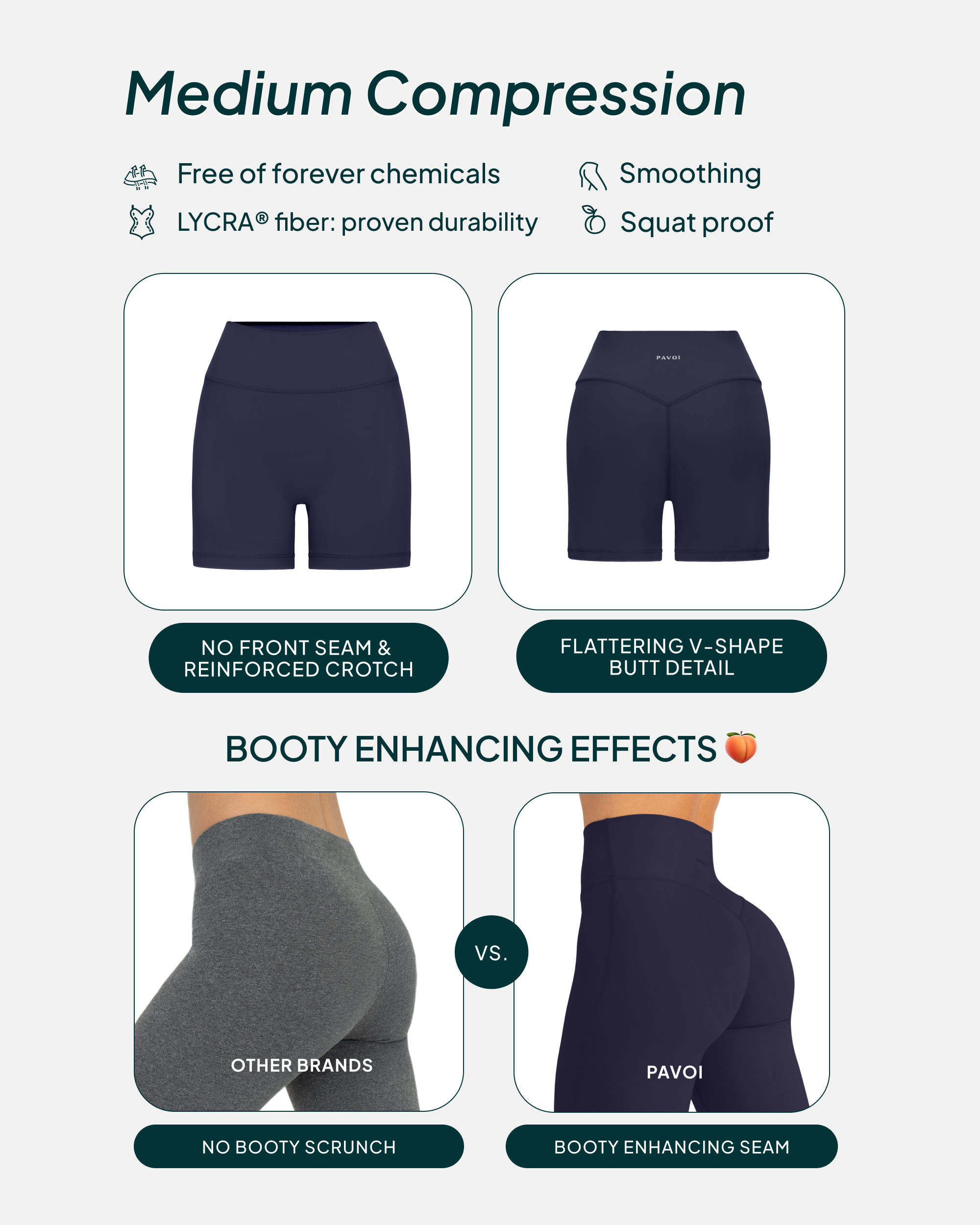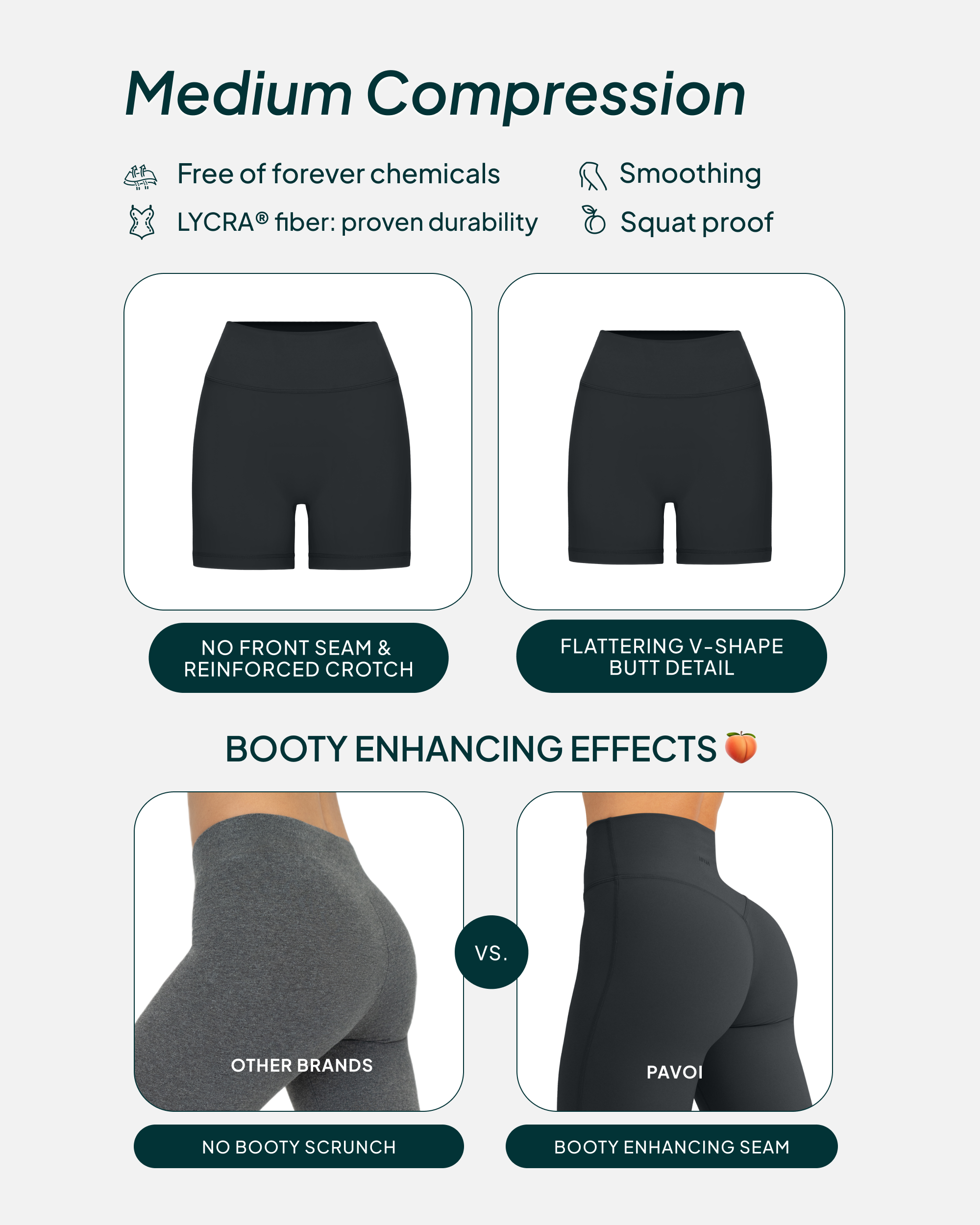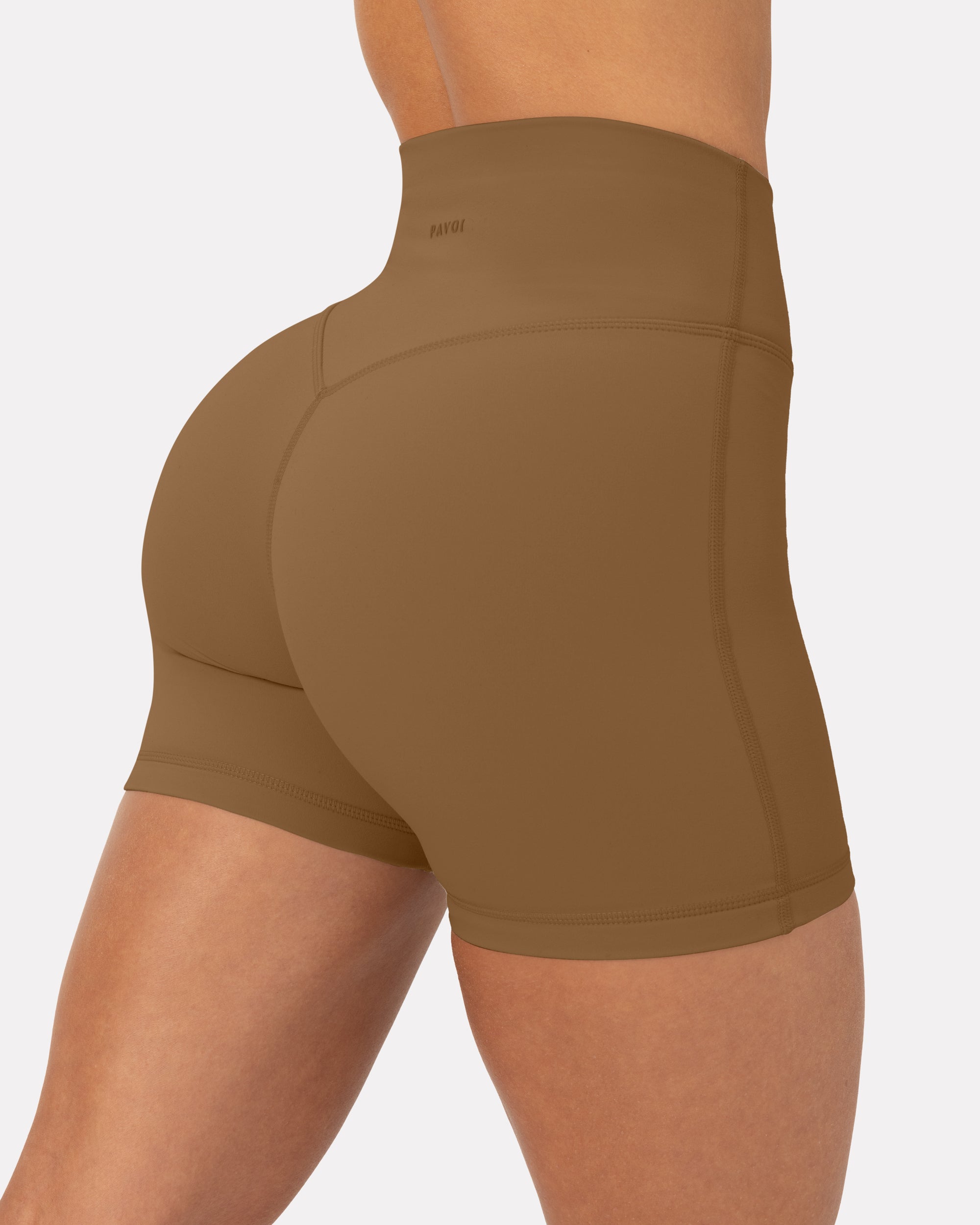 Biker shorts with the extra lift you need for hitting all your pilates moves and yoga poses with flattering back detail and a comfortable high waistband. Features soft, breathable fabric with medium coverage and a 4" inseam that hits the upper thigh.FLEXFLOW COLLECTION: Athleisure staples for looking good and feeling good from yoga class to the coffee shop with ease and nonstop comfort.BODY HUGGING: A soft, comfy feel meets flattering support for light-impact activities and recovery days.FIT AND DESIGN: Flattering butt-lifting biker shorts for extra lift and sculpting support during low-impact workout classes, rest days, and yoga.ALL-DAY COMFORT: Comfortable high waistband and double-layered gusset for no camel toes or chafing.FEATURES: 4" upper mid-thigh inseam and squat-proof (not see-through!) dark colors for peace of mind at the gym.PREMIUM FABRICS: Active by PAVOI styles are made of PFA- and BPA-free silky-soft fabrics that never pill. 70% NYLON 30% LYCRA®