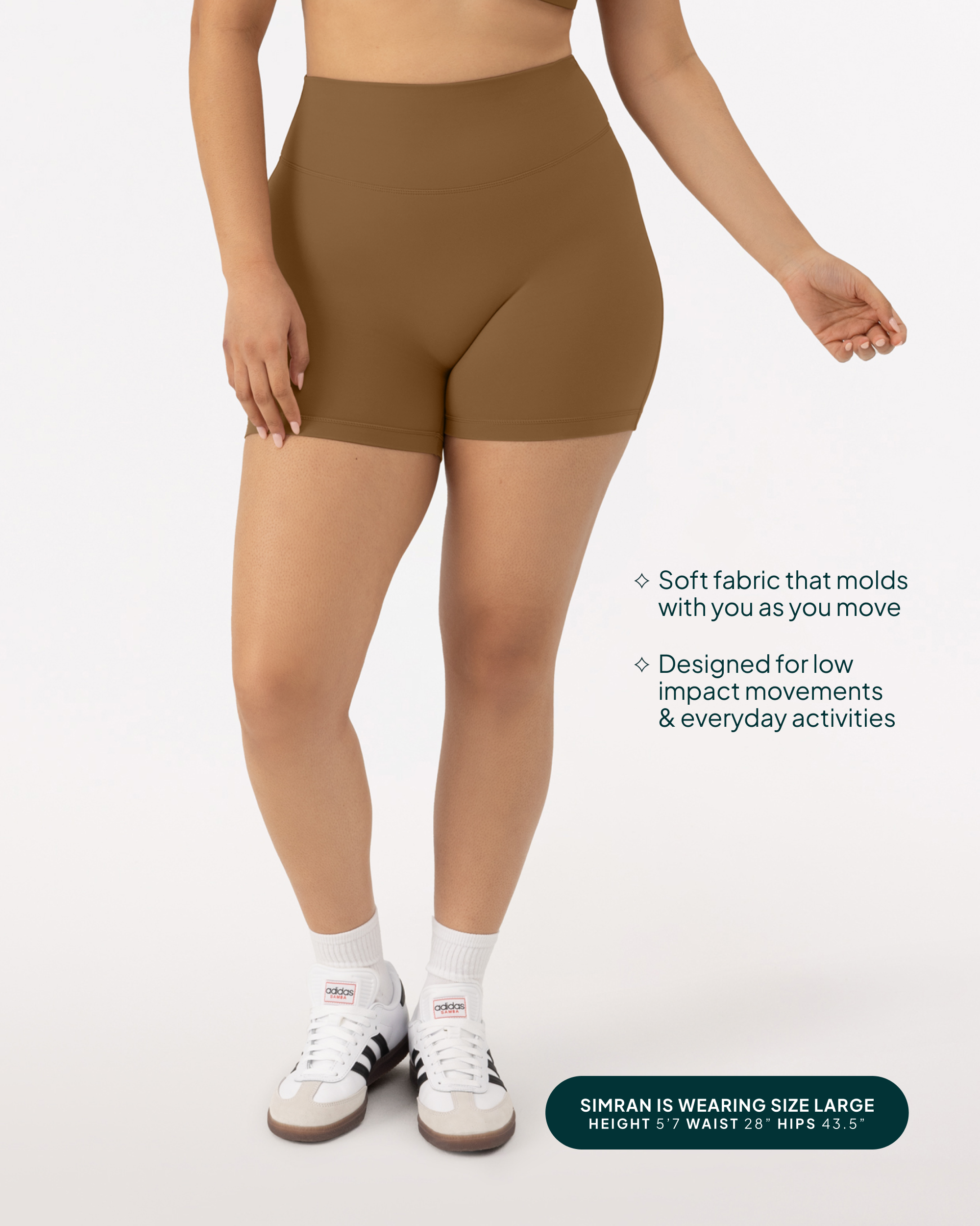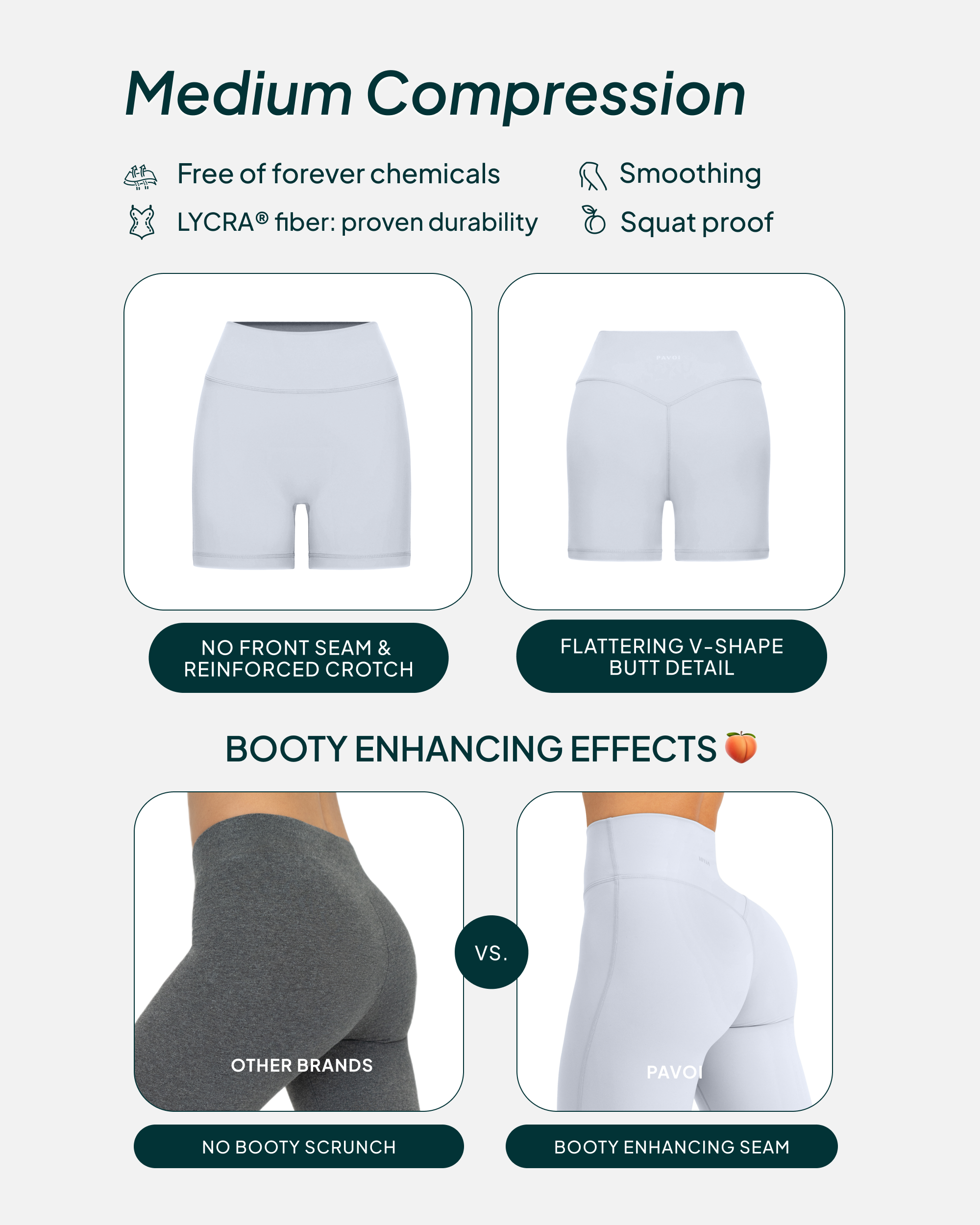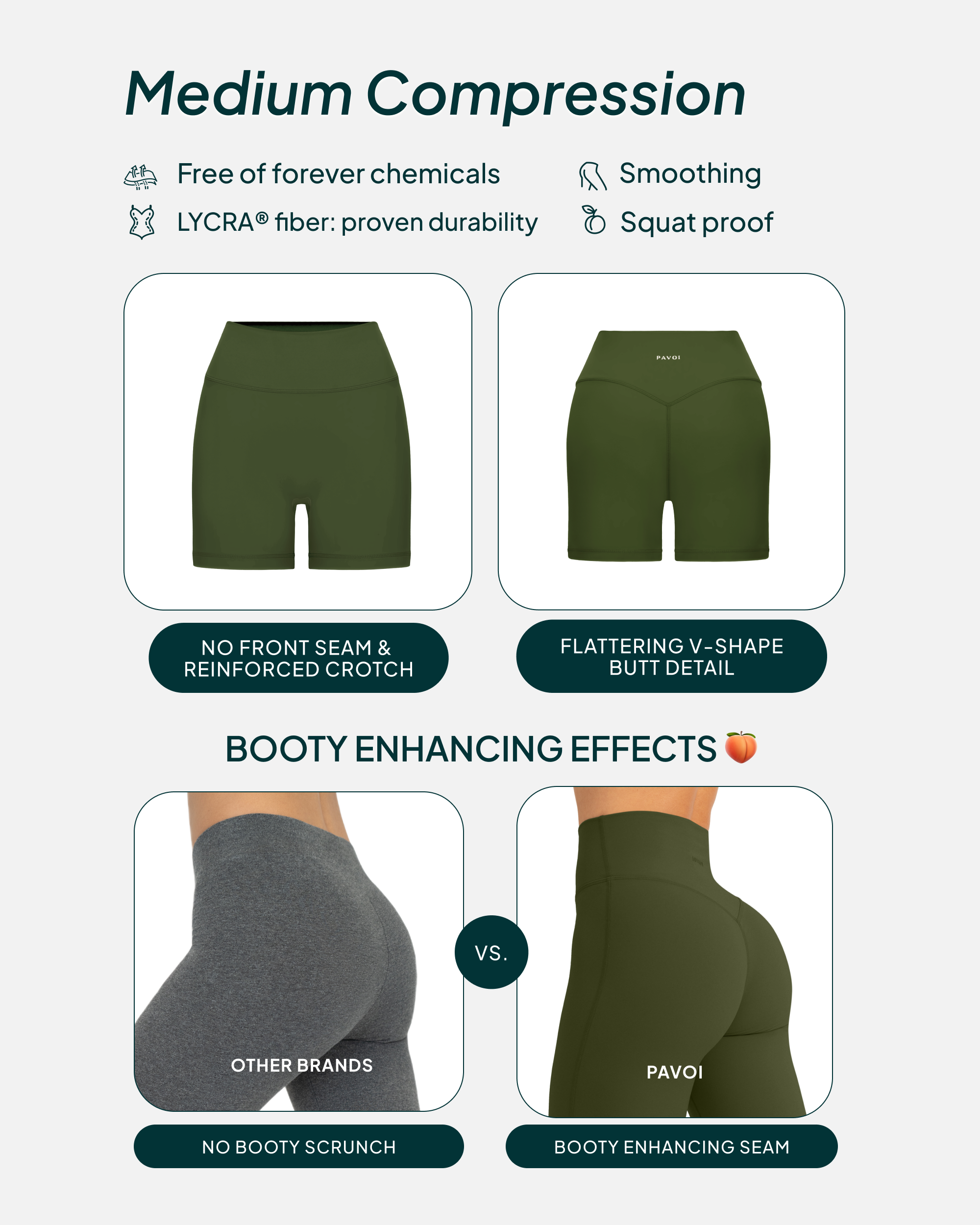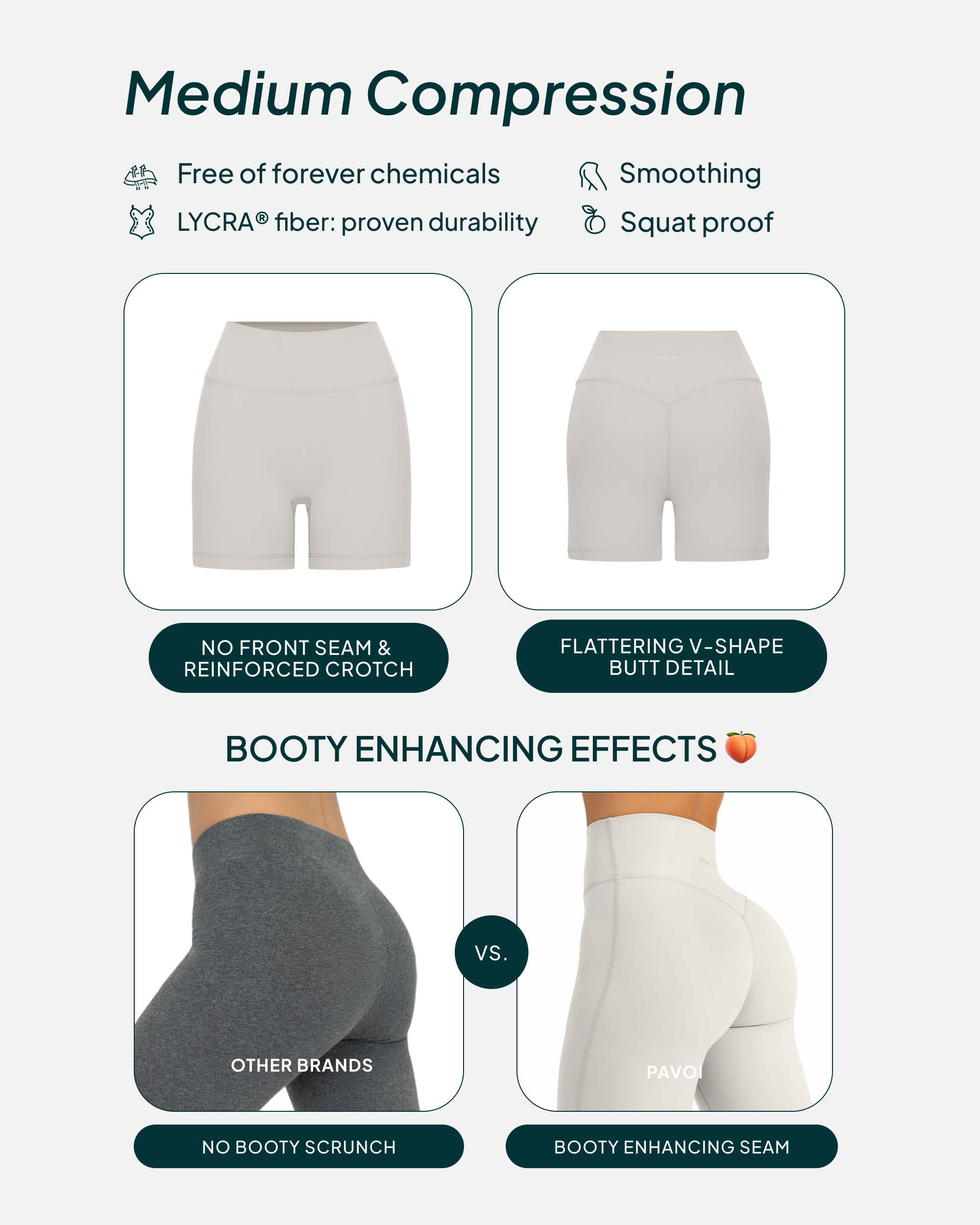 Biker shorts with the extra lift you need for hitting all your pilates moves and yoga poses with flattering back detail and a comfortable high waistband. Features soft, breathable fabric with medium coverage and a 4" inseam that hits the upper thigh.FLEXFLOW COLLECTION: Athleisure staples for looking good and feeling good from yoga class to the coffee shop with ease and nonstop comfort.BODY HUGGING: A soft, comfy feel meets flattering support for light-impact activities and recovery days.FIT AND DESIGN: Flattering butt-lifting biker shorts for extra lift and sculpting support during low-impact workout classes, rest days, and yoga.ALL-DAY COMFORT: Comfortable high waistband and double-layered gusset for no camel toes or chafing.FEATURES: 4" upper mid-thigh inseam and squat-proof (not see-through!) dark colors for peace of mind at the gym.PREMIUM FABRICS: Active by PAVOI styles are made of PFA- and BPA-free silky-soft fabrics that never pill. 70% NYLON 30% LYCRA®
