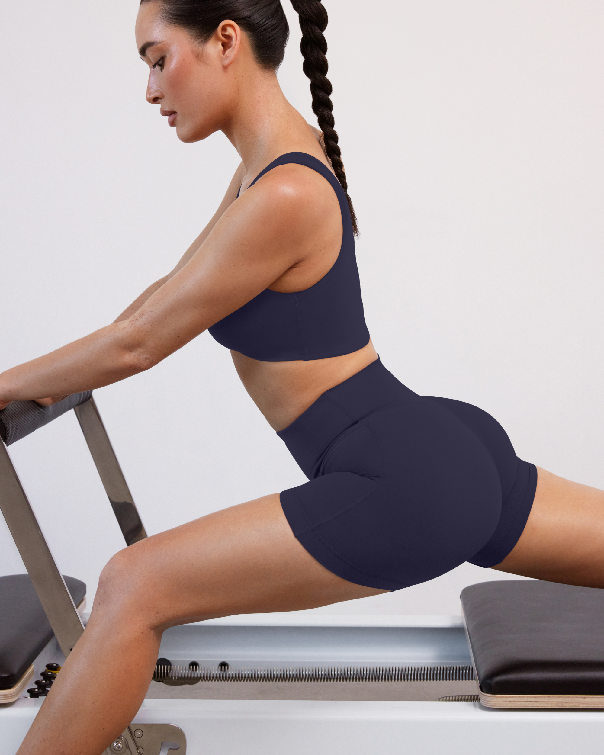 Biker shorts with the extra lift you need for hitting all your pilates moves and yoga poses with flattering back detail and a comfortable high waistband. Features soft, breathable fabric with medium coverage and a 4" inseam that hits the upper thigh.