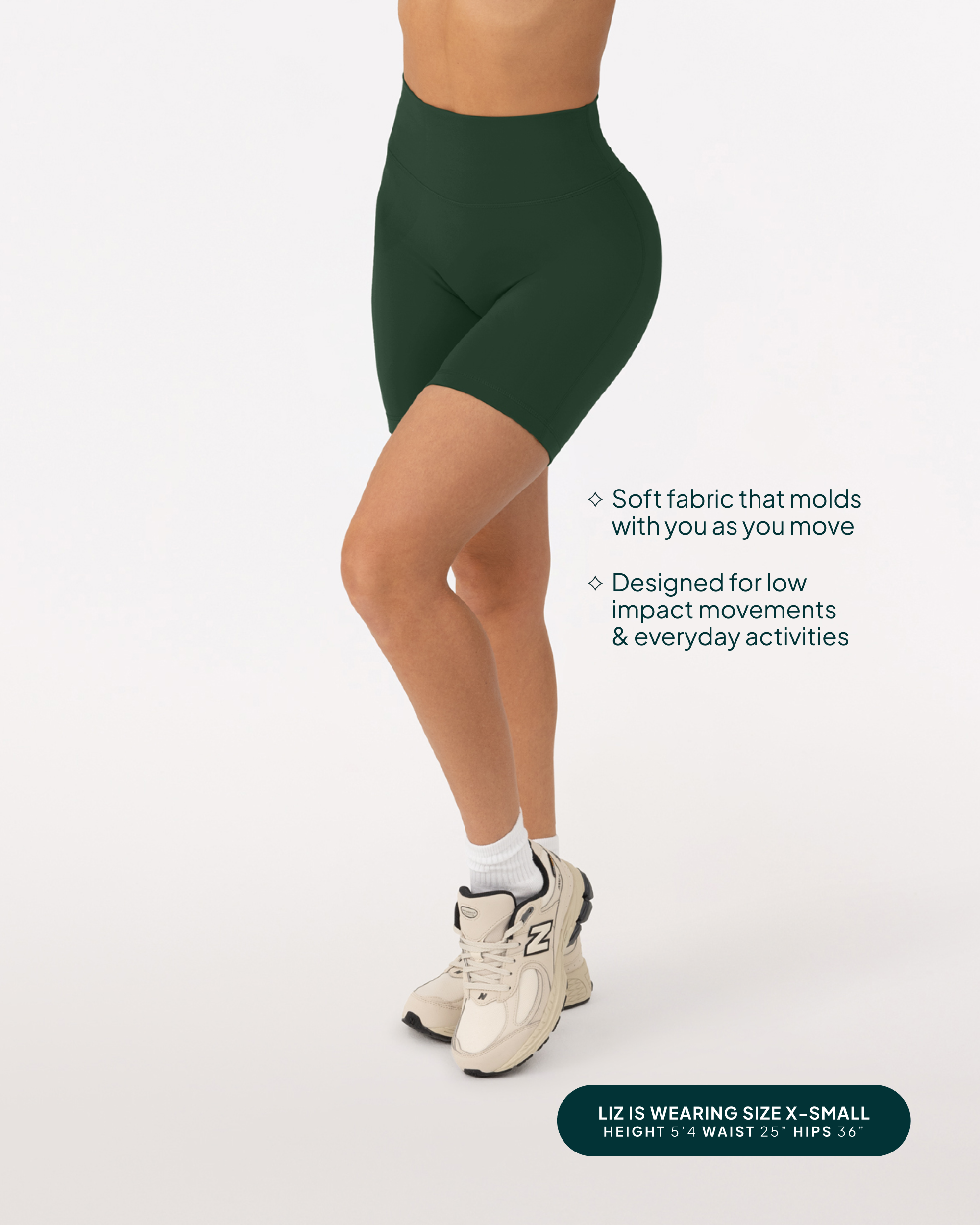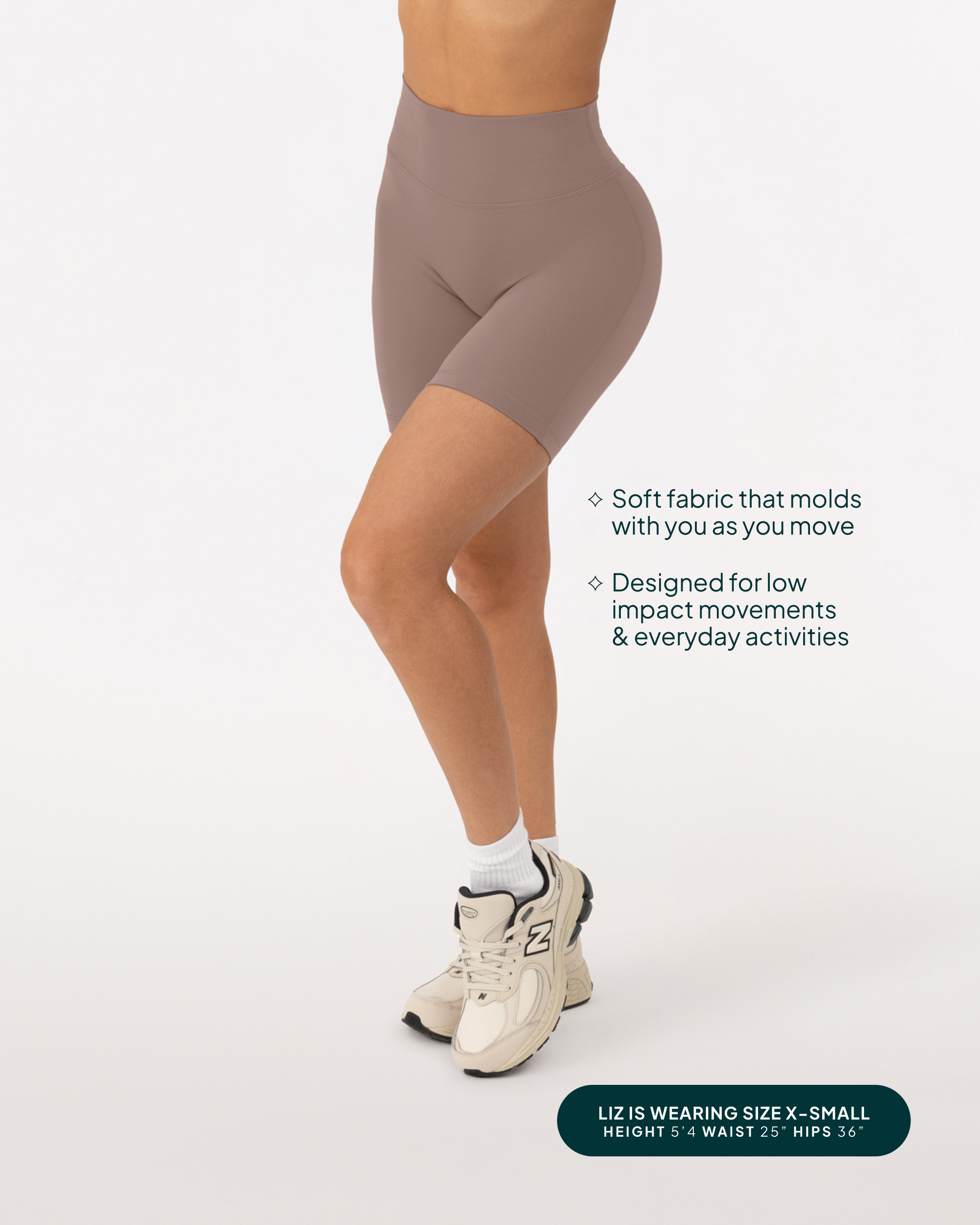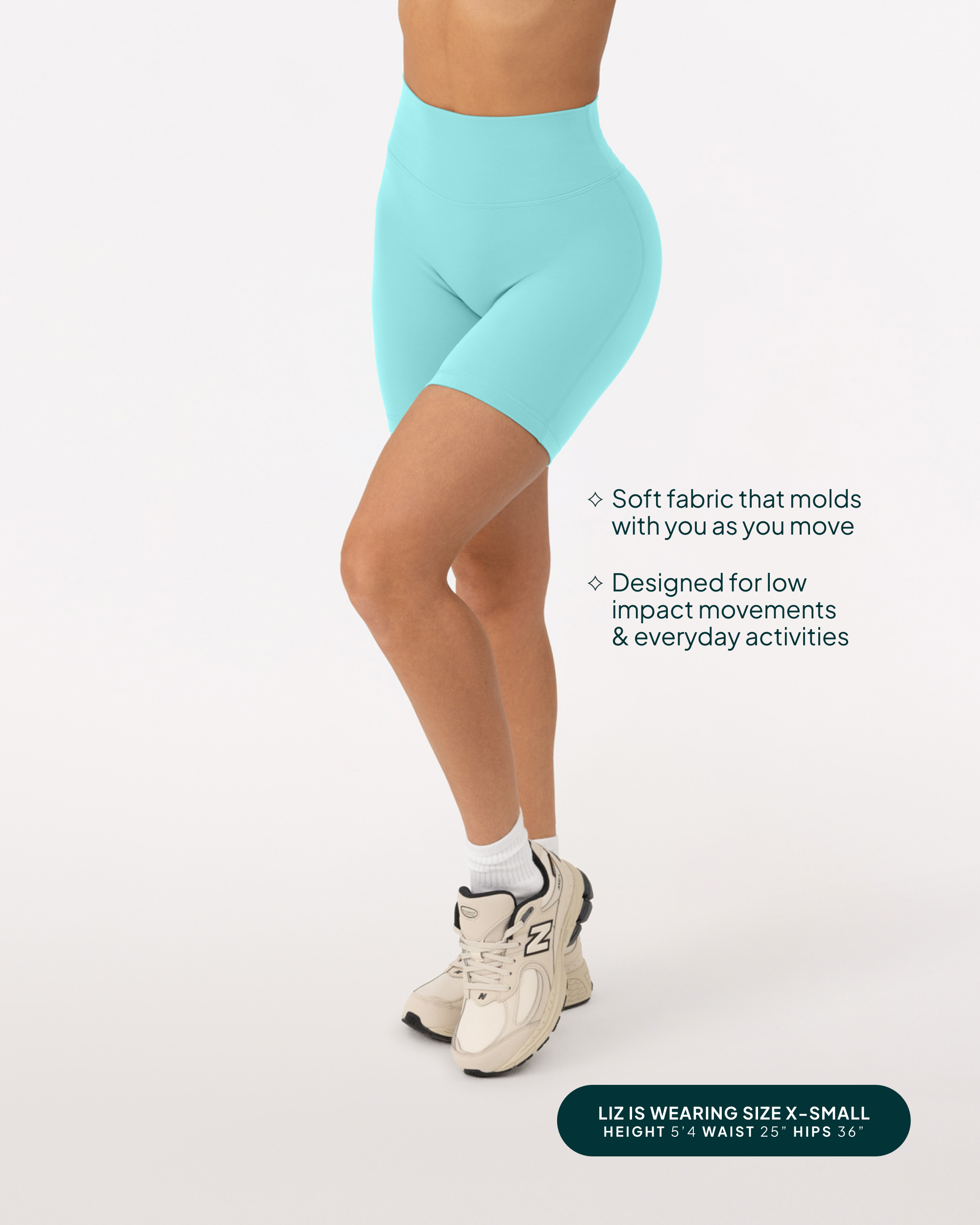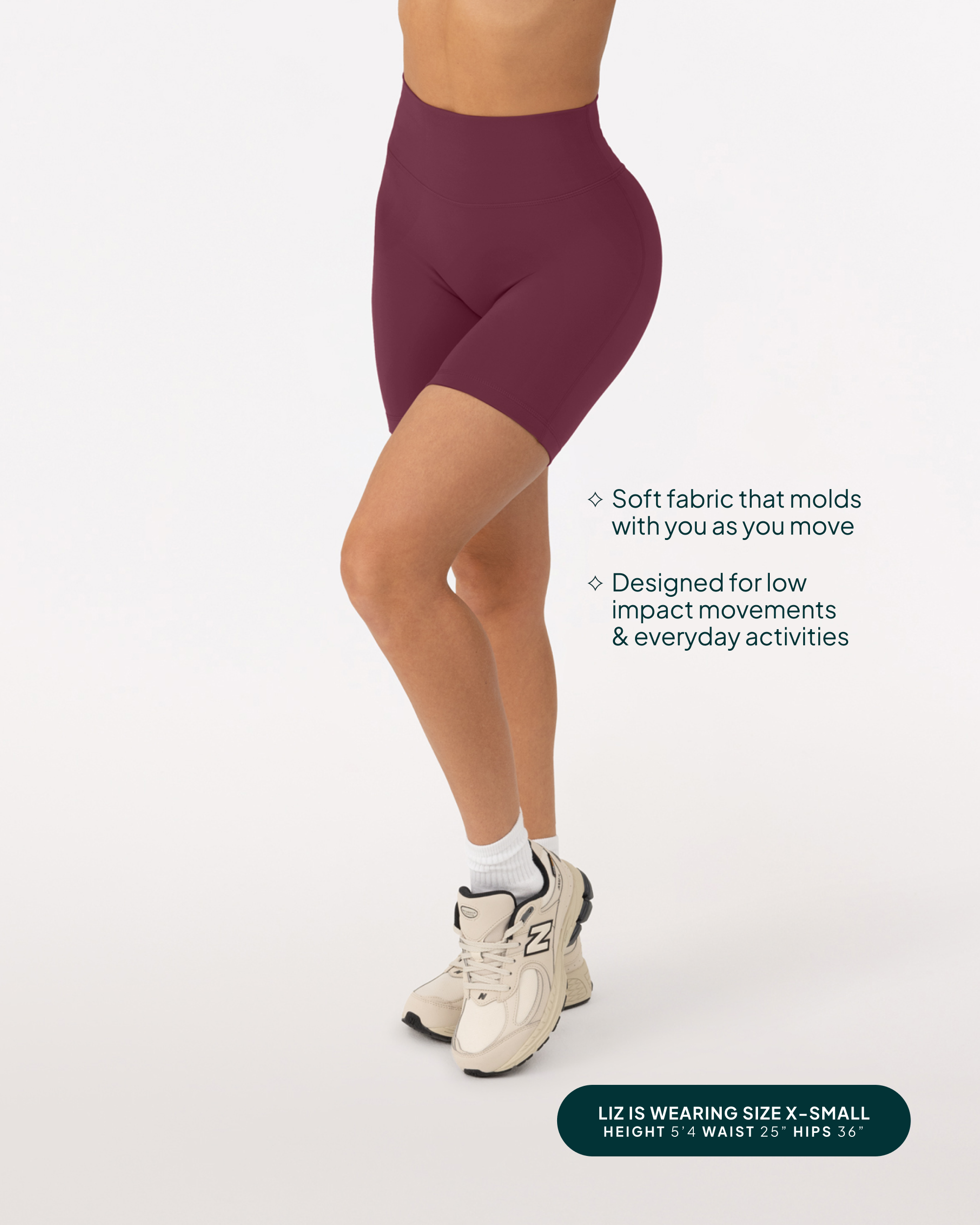 Biker shorts with the extra lift you need for hitting all your pilates moves and yoga poses with flattering back detail and a comfortable high waistband. Features soft, breathable fabric with medium coverage and a 6" inseam that hits mid thigh.
