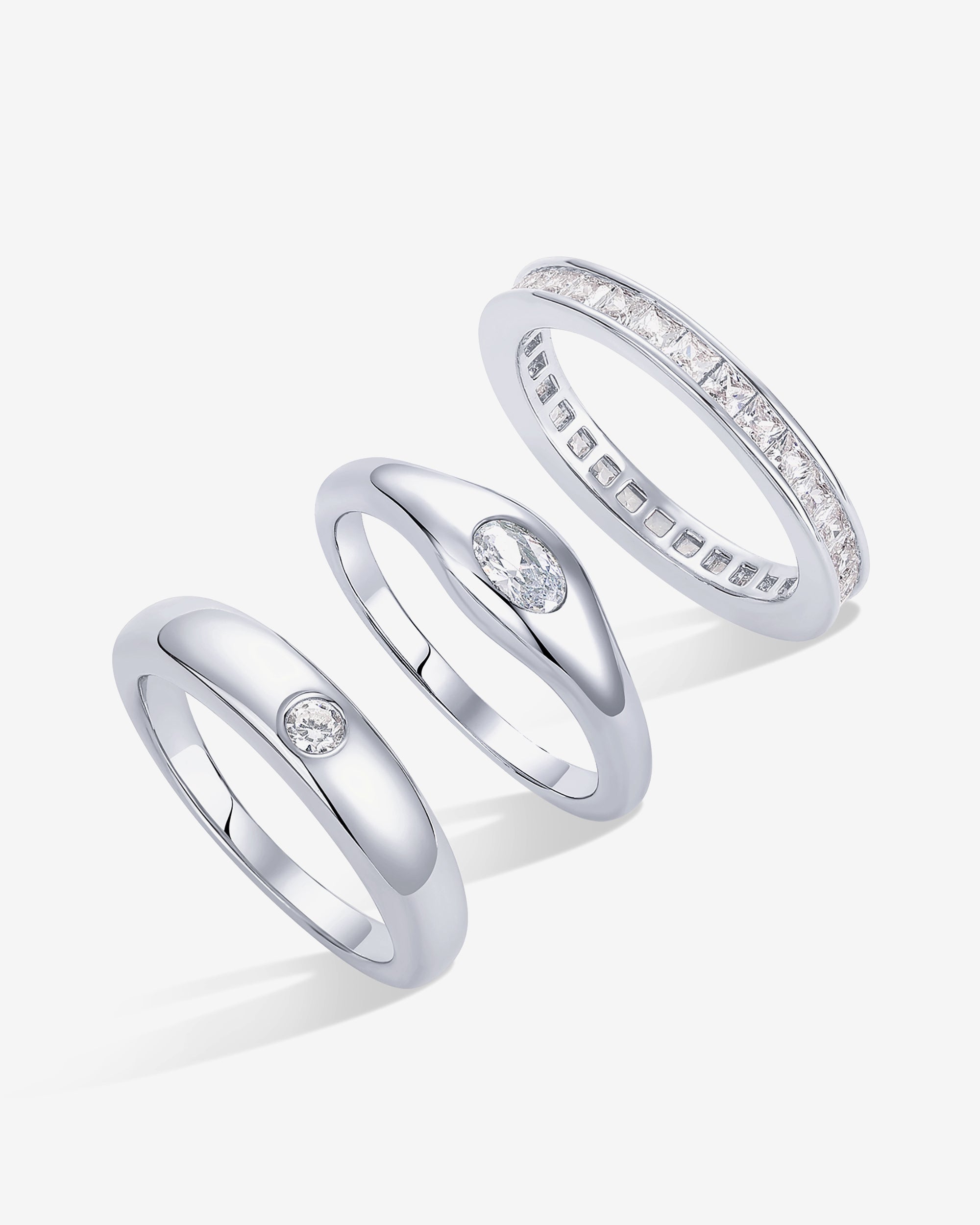 Mixed Stone Cuts Band Ring Set of 3