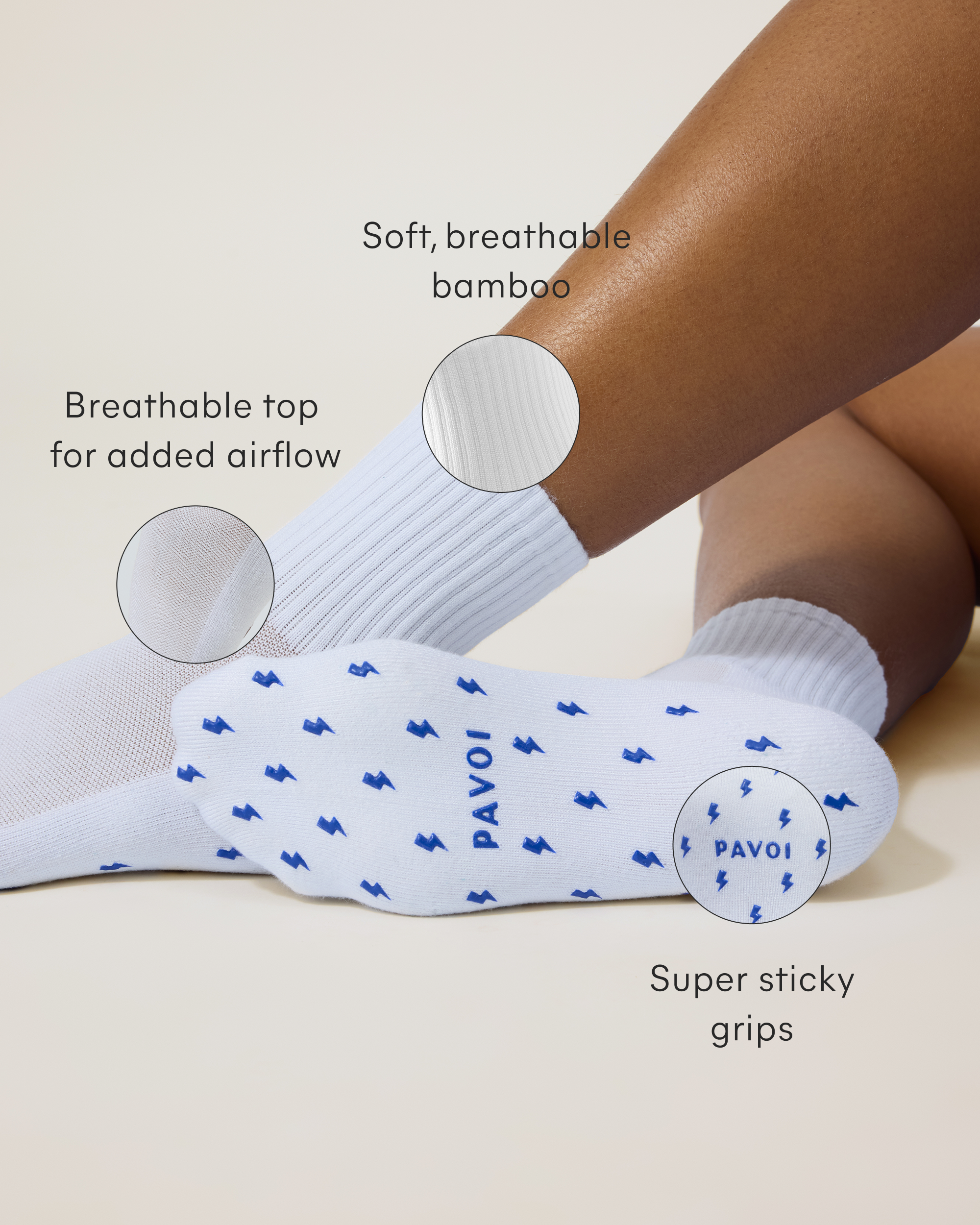 PREMIUM BAMBOO FABRIC: These grip socks for pilates are crafted from a soft, breathable bamboo blend that feels gentle on skin and is free of forever chemicals for everyday comfort.