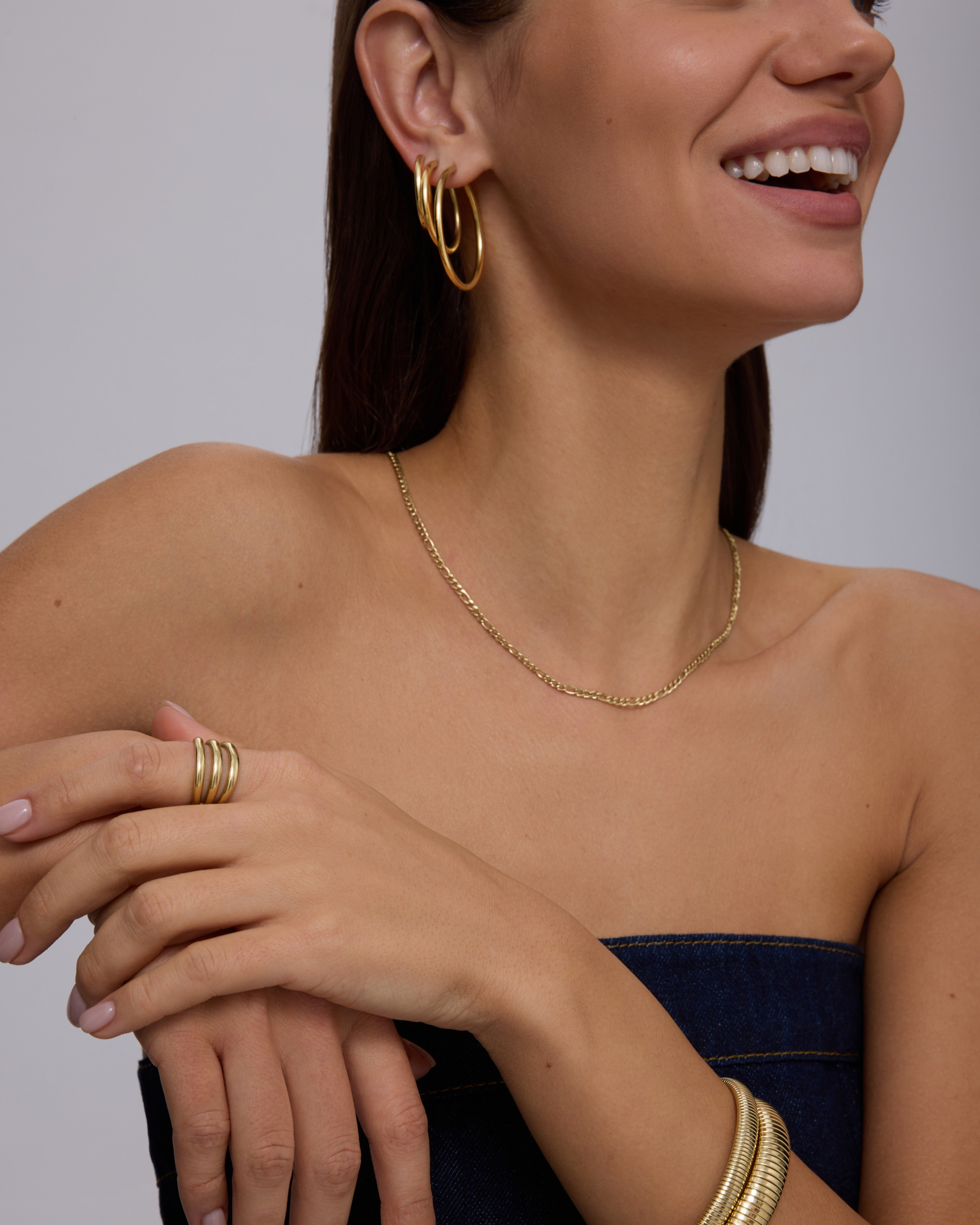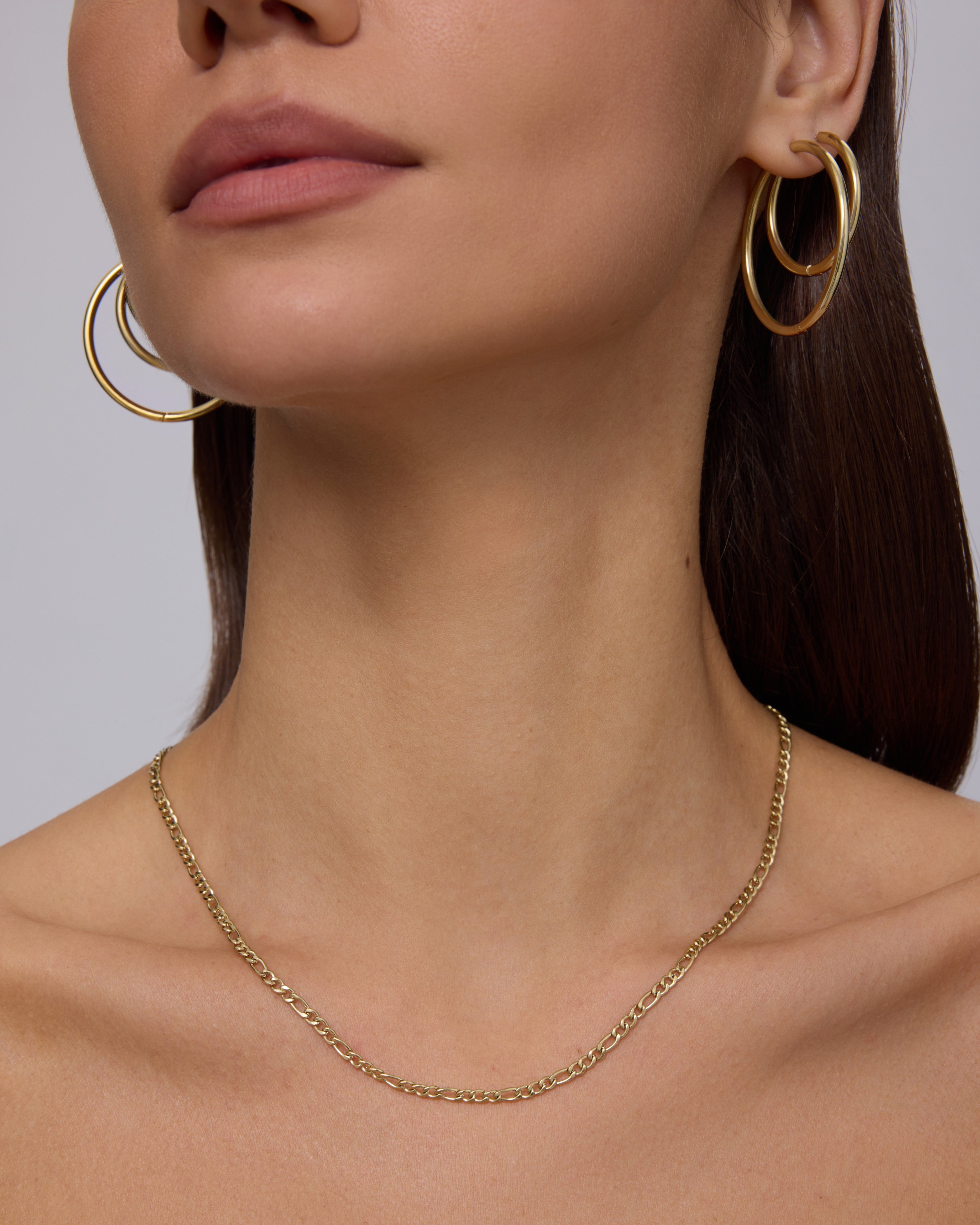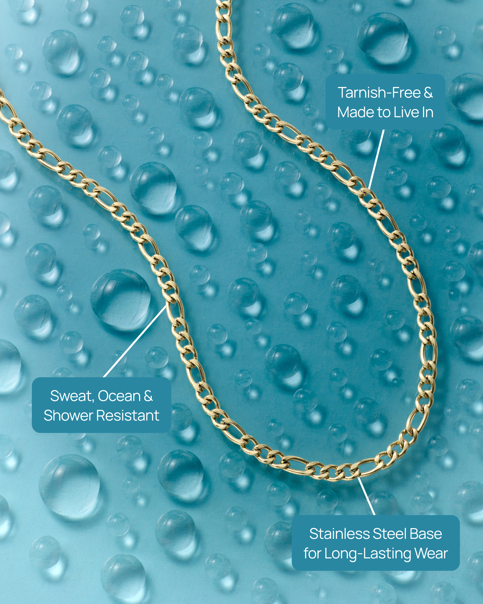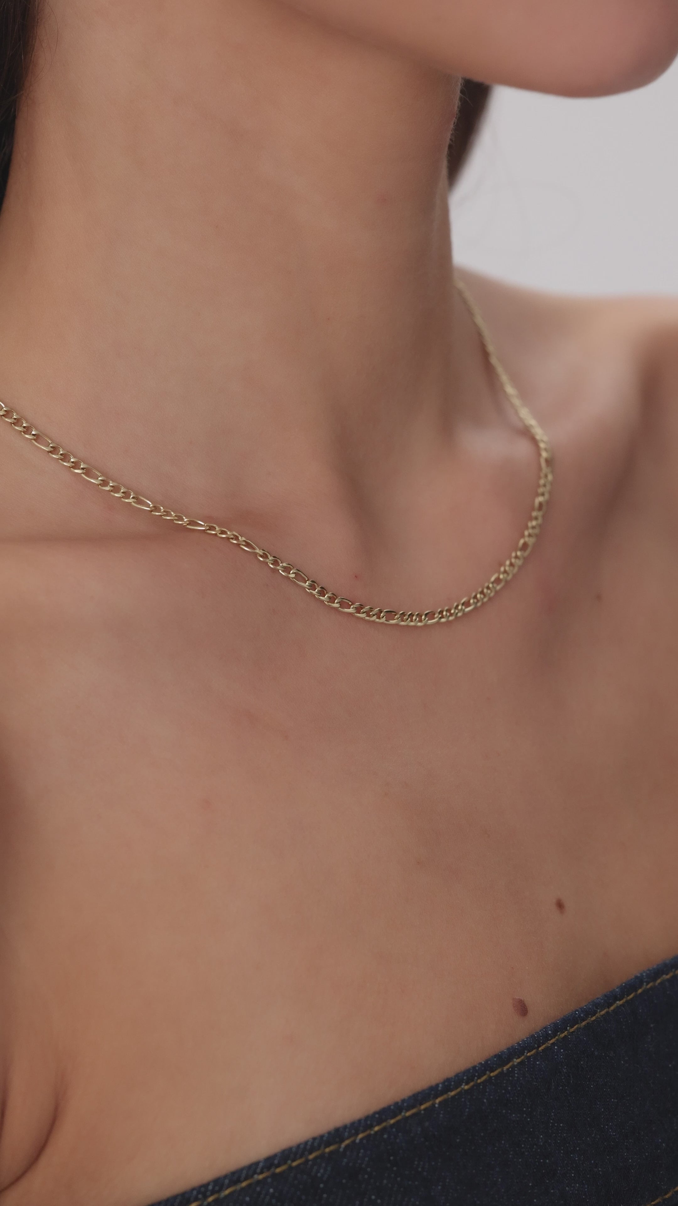 Elevate your look with this 14K gold plated Figaro chain. Waterproof and adjustable at 16"+2", it’s perfect for layering or wearing solo for a sleek, everyday gold necklace.
