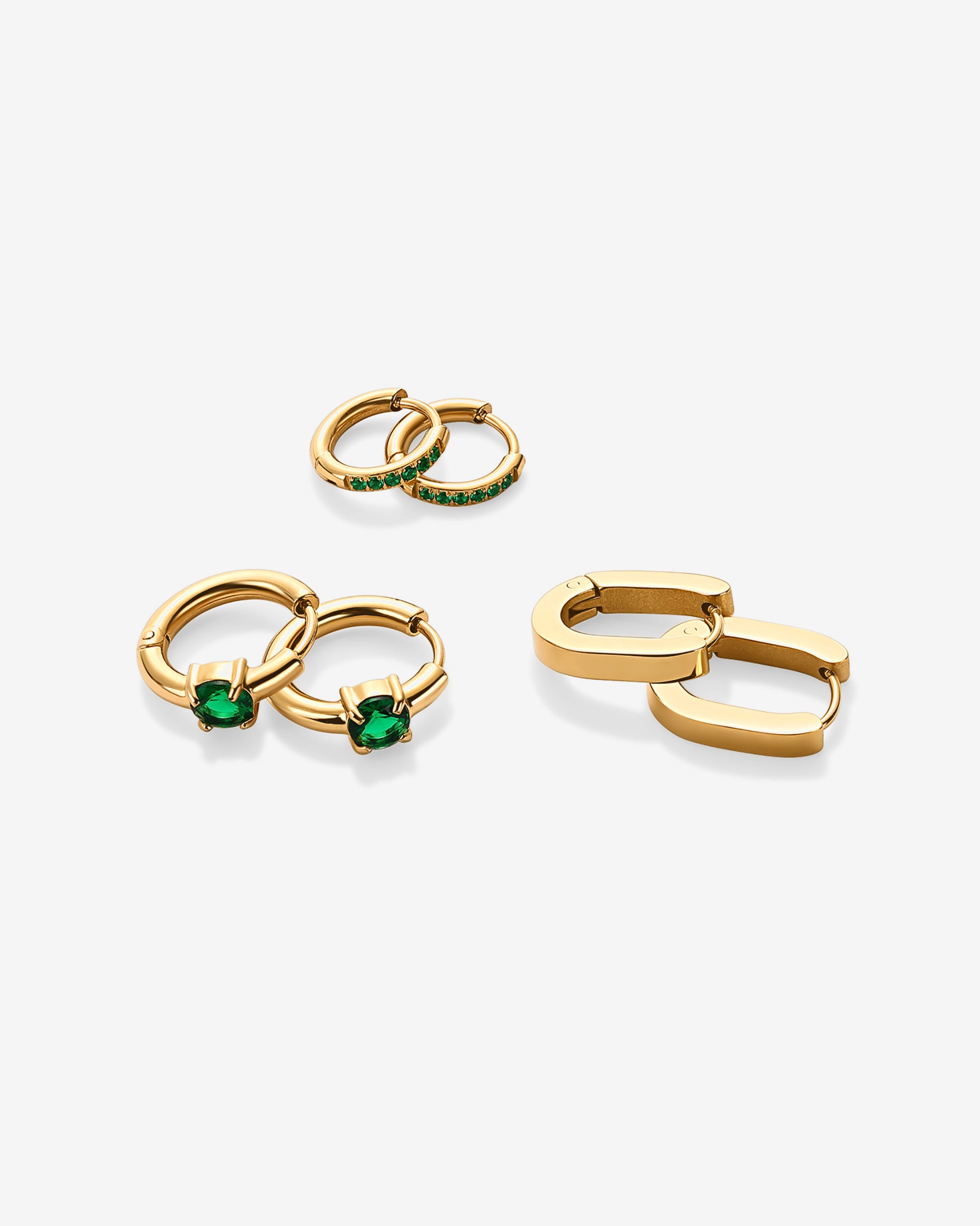 A luxe pairing of 1.3mm and 5mm CZ huggie hoops crafted with 14K gold plating. Waterproof, lightweight, and perfect for stacking, this set adds refined sparkle while staying true to PAVOI’s promise of sustainable, everyday jewelry made from recycled materials.